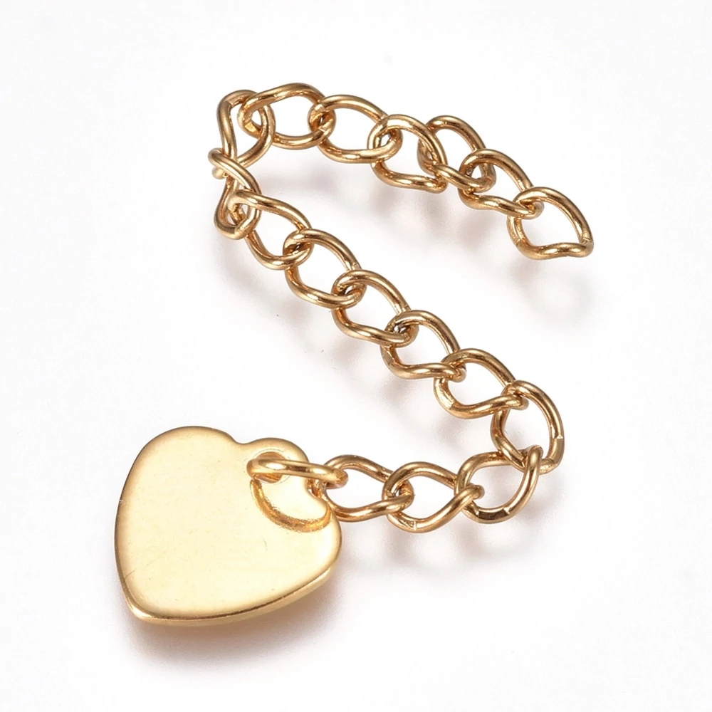 Nemesacél arany színű lánchosszabbító szív dísszel