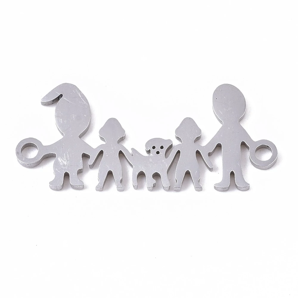 A nemesacél család kapcsolóelem tökéletes választás mindenkinek, aki ékszerkészítéssel foglalkozik. Az elegáns, 24,5x11x1 mm méretű összekötő elem nem csupán stílusos, hanem rendkívül tartós is, hiszen antiallergén anyagból készült. Az apa, anya, két kisfiú és kutya figura egyedivé varázsolja ékszereit, lehetővé téve, hogy személyes érzelmeket is kifejezzen. Karkötő készítéshez ideális, hiszen kiszerelése 1 db, így egyszerűen és praktikusan felhasználható. Engedje szabadon kreativitását ezzel a különleges kapcsolóelemmel!