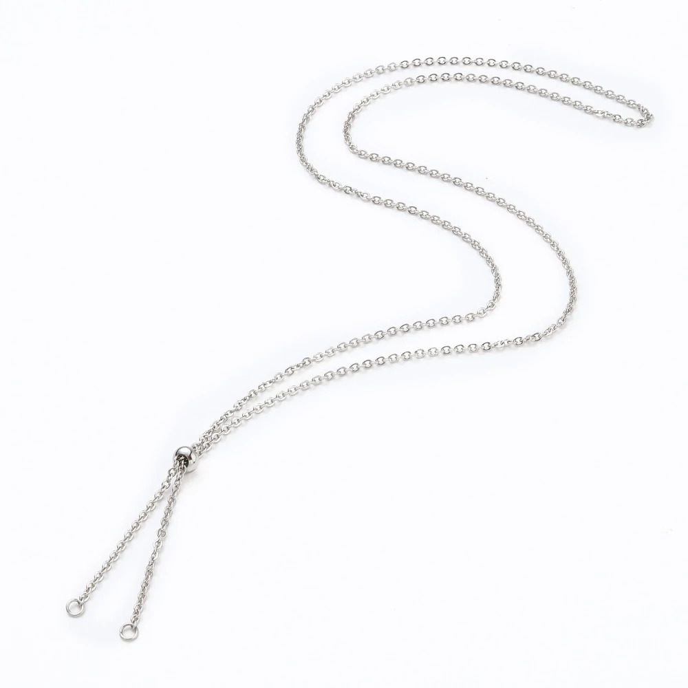 Ez a nemesacél csúszózáras nyaklánc egy megbízható, mindennapos darab, ami minden ékszerkészítő számára kedvelt alapanyag. A 60 cm-es hossz szabályozható, a csúszózár segítségével rövidíthető vagy hosszabbítható a viselője igénye szerint. A 304-es minőségű nemesacél antiallergén és hosszú élettartamot garantál, nem rozsdásodik, nem kopik, és nem igényel különleges karbantartást. A 2 mm-es láncszem kompakt és elegáns, amely tökéletes alapot biztosít különféle medálok, fityegők vagy gyöngyök felfűzéséhez . A 6x3 mm-es csúszózár könnyen állítható és biztonságos, így a nyaklánc minden testalkathoz kiválóan alkalmazkodik. Ez egy olyan alapdarab, ami soha nem megy ki a divatból – használd saját magad számára vagy építsd be a kreatív projektedbe. A csúszózárnak köszönhetően a lánc kiválóan alkalmazkodik a viselője igényeihez, így igazi, személyre szabott ékszer válik belőle.