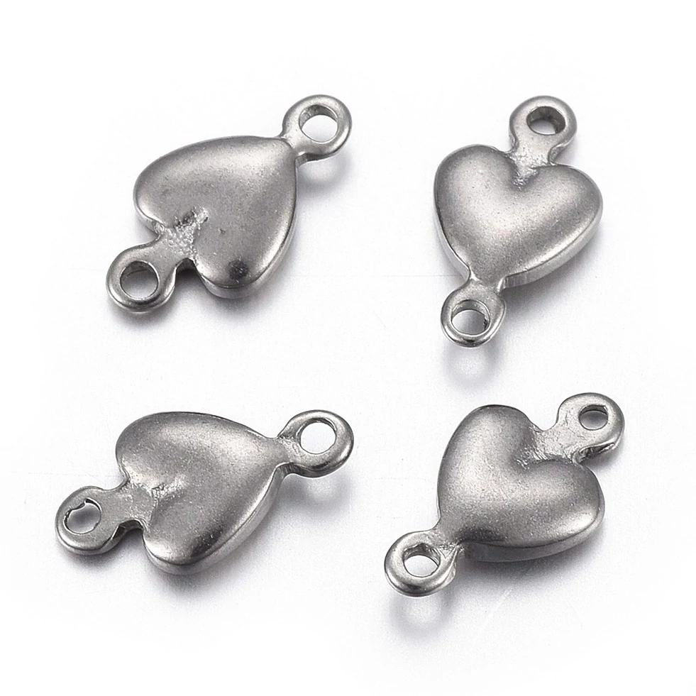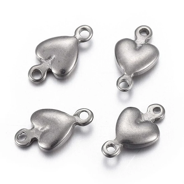 Ez a nemesacél szív alakú kapcsolóelem tökéletes választás minden ékszerkészítő számára, aki egyedi és stílusos megoldásokra vágyik. A 10x7x2 mm-es méretének köszönhetően ideális összekötő elem lehet karkötők vagy nyakláncok készítéséhez. Antiallergén anyaga biztosítja, hogy viselete mindenki számára komfortos legyen. Csillogó nemesacél színe feldobja gyönyörű ékszereit, és különleges érzetet ad minden darabnak. Légy kreatív, és használd ezt az elbűvölő elemet a következő projektedhez!