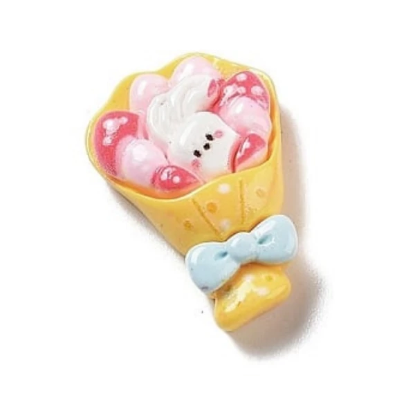 Nyuszi csokorban műgyanta kaboson (25x20x8mm)