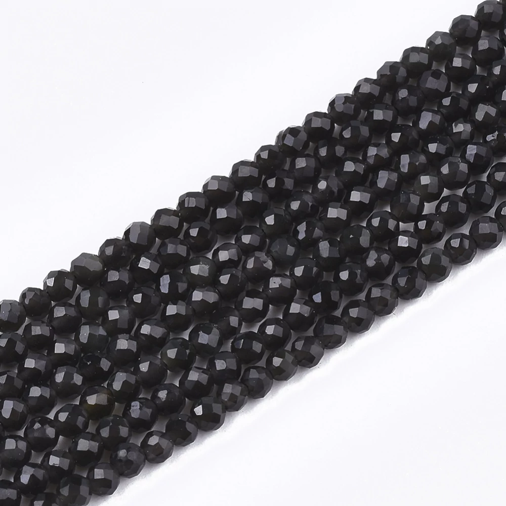 Obszidián ásványgyöngy szálban (3mm)/ 37cm szálon