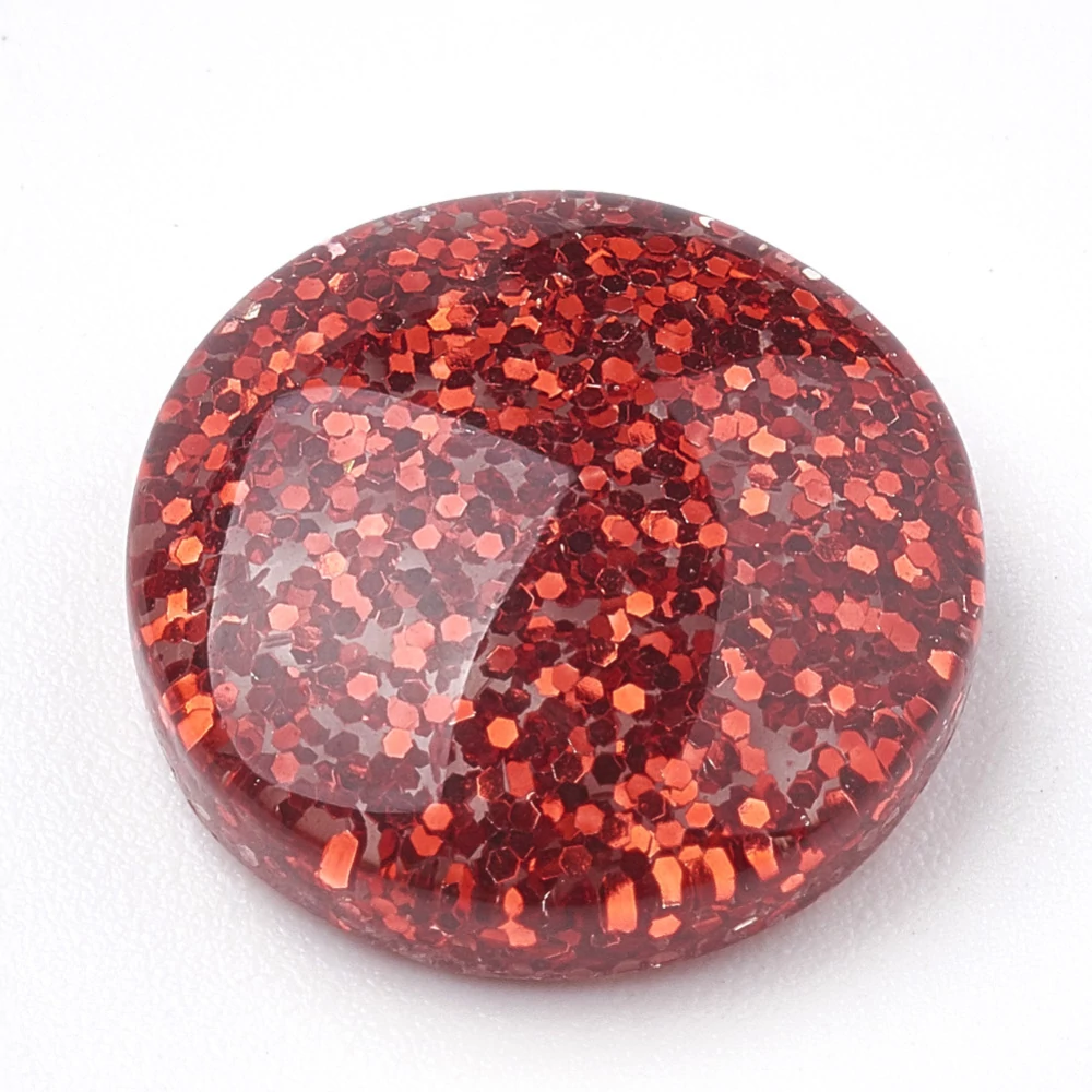 Piros színű glitteres műgyanta kabochon (14mm) /4db