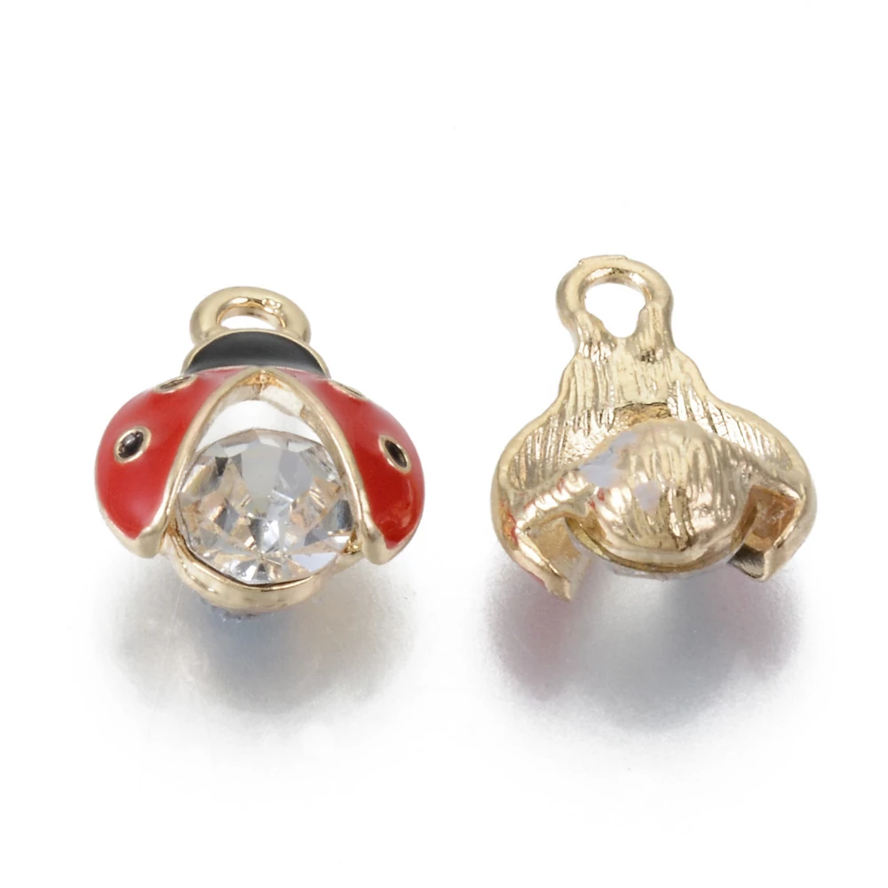 Ez a piros-világos arany zománcozott strasszos katicabogár fityegő tökéletes választás minden ékszerkedvelő számára! Az édes és játékos dizájnja ideális charm-ként, medálként vagy karkötő díszként történő felhasználásra. A fémötvözetből készült charm mérete (15x12x7 mm) könnyedén felhelyezhető kedvenc kiegészítőidre, miközben a ragyogó strasszok fénye egyedi bájt kölcsönöz. Illeszd be az ékszerkészítés projekteidbe, és hozd el a szerencsét és boldogságot minden viselőjének!