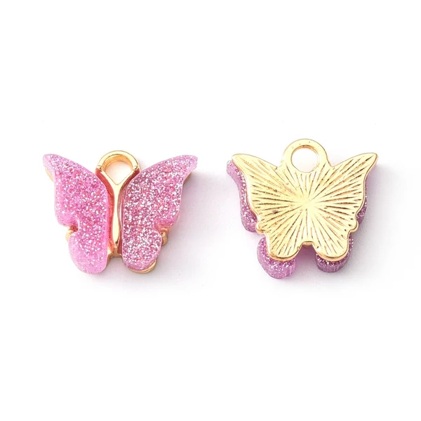 A Rózsaszín pillangó zománcozott fityegő tökéletes választás minden ékszerkedvelő számára! Ez a bájos charm medál arany és rózsaszín színkombinációjával játékos bájt kölcsönöz karkötőknek és nyakláncoknak egyaránt. Az 13x15x3,5mm-es méretének köszönhetően könnyedén kombinálhatod más díszekkel, így minden ékszerkészítés során egyedi megjelenést érhetsz el. A fémötvözetből készült kisállat pillangó minden szettet feldob, és igazi élményt nyújt a viselője számára! Engedd szabadjára kreativitásodat ezzel a különleges charm medállal!