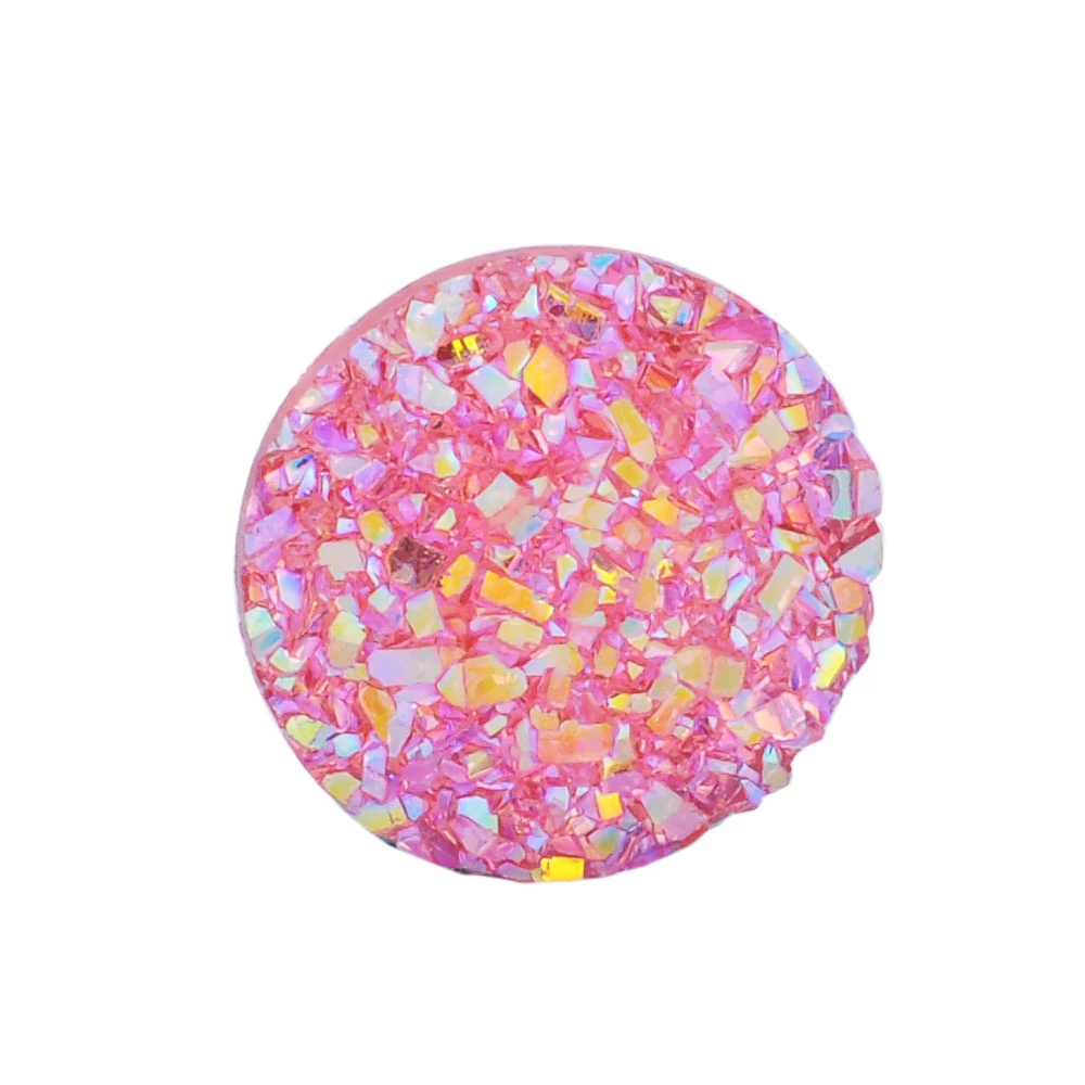 Rózsaszín színű csillámos druzy műgyanta kabochon (12mm) /4db
