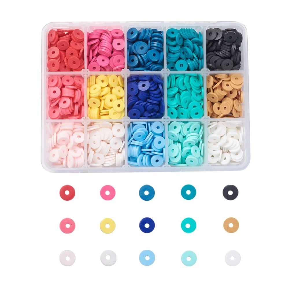 Színes polimer lapított gyöngy dobozban (8mm/2100db)