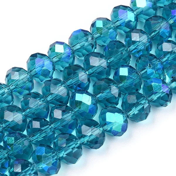 Színjátszós kékeszöld csiszolt üveggyöngy szálban (10x8mm) / 63~65db