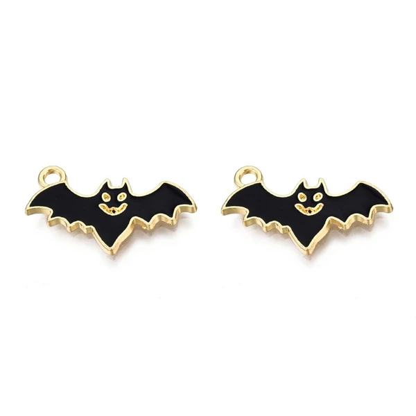 Ez a zománcozott halloween denevér fityegő tökéletes választás minden ékszerkészítő számára, aki valami különlegeset szeretne adni az alkotásaihoz. Az antikolt ezüst színű fityegő szemet gyönyörködtető fekete és világos arany színvilágával kiválóan passzol Halloween témájú ékszerekhez. Mérete 14x23x1.5mm, így tökéletesen illeszkedik karkötők, láncok vagy akár egyedi medálok díszítéséhez. Készítsen lenyűgöző ékszereket, amelyekkel mindenki figyelmét felhívhatja, és hozza el a denevérek varázslatos világát!